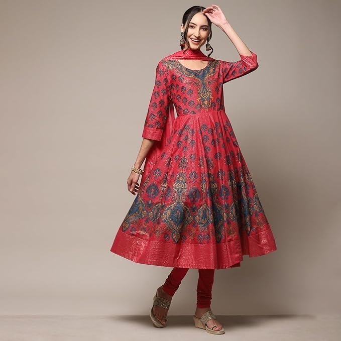 BIBA Women Cotton Anarkali Kurta Churidar Suit Set