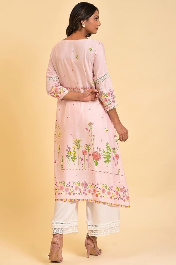 W for Woman Light Pink Floral Printed Summer Kurta