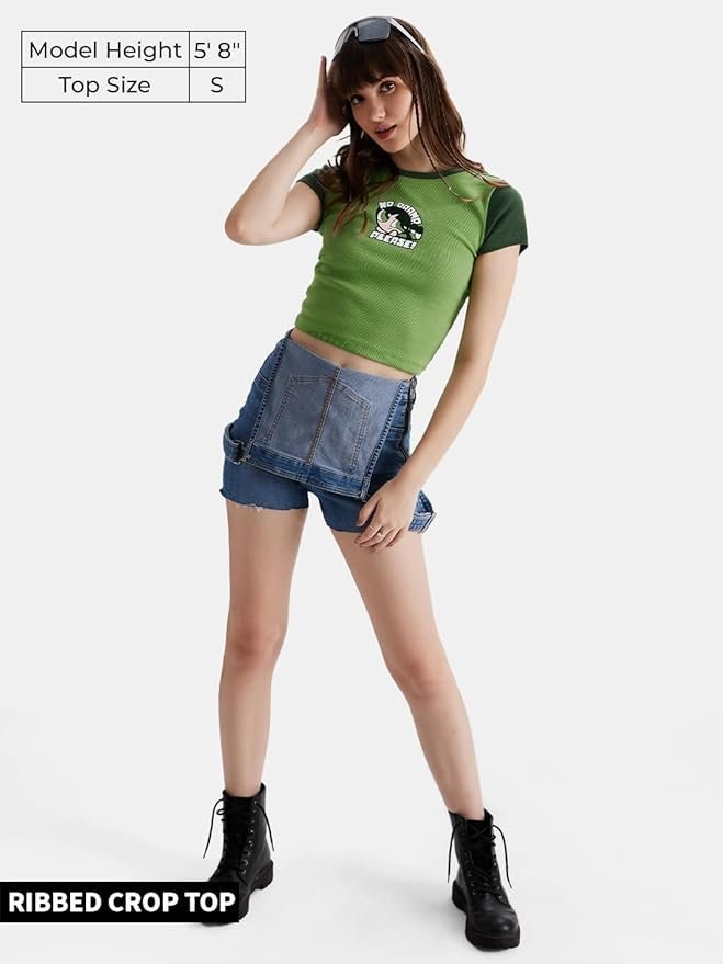 Womens and Girls Regular fit Graphic Printed Half Sleeve Cotton Multicolored Women Cropped Tops
